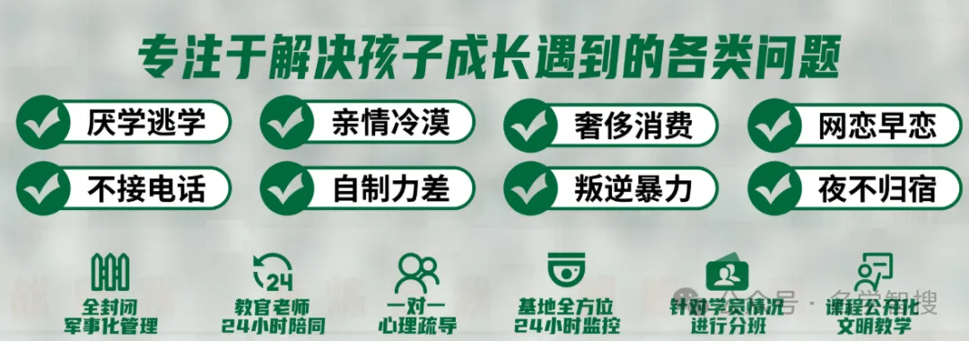 1、全封闭式军事化管理模式,通过共同饮食和住宿来确保孩子的安全,培养纪律性,改善懒散的生活习惯,从而帮助孩子养成良好的生活习惯。
